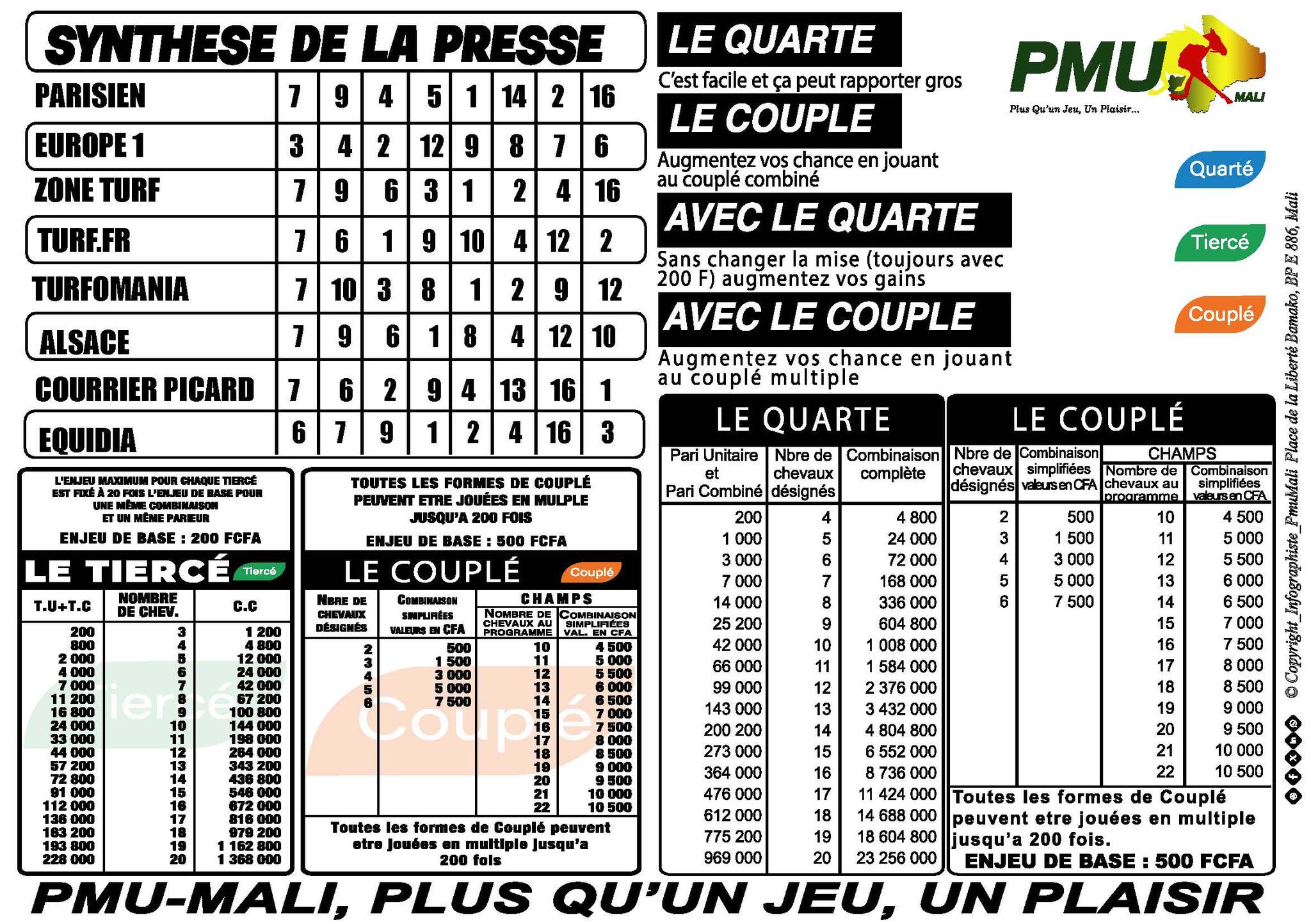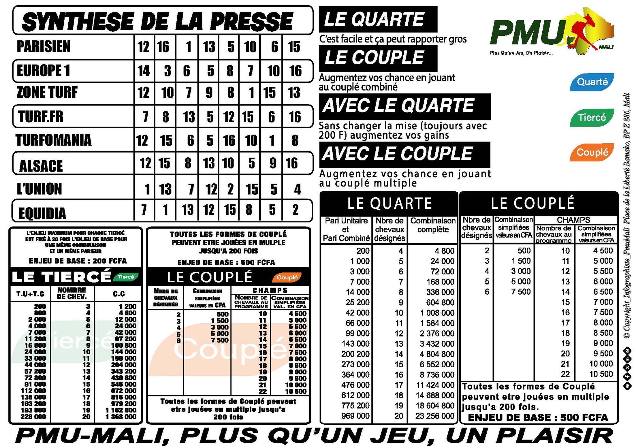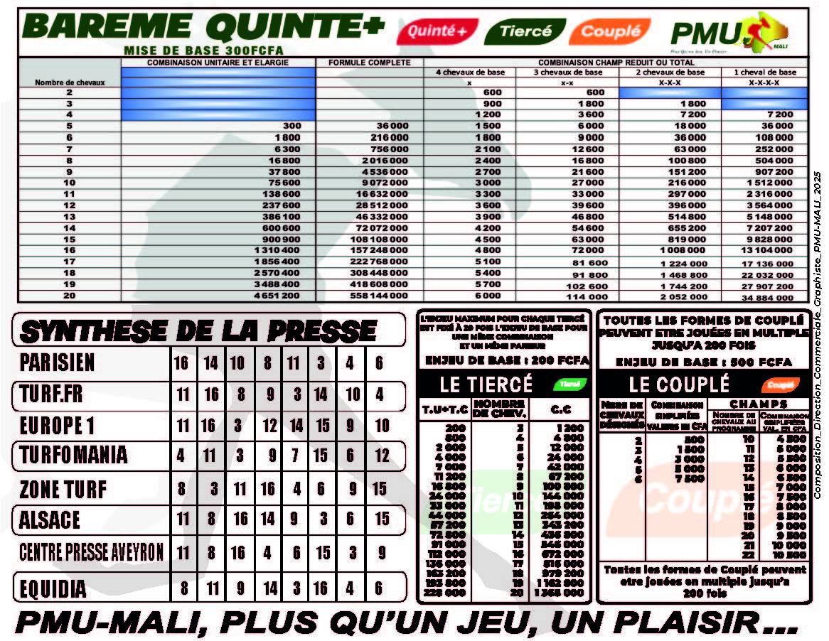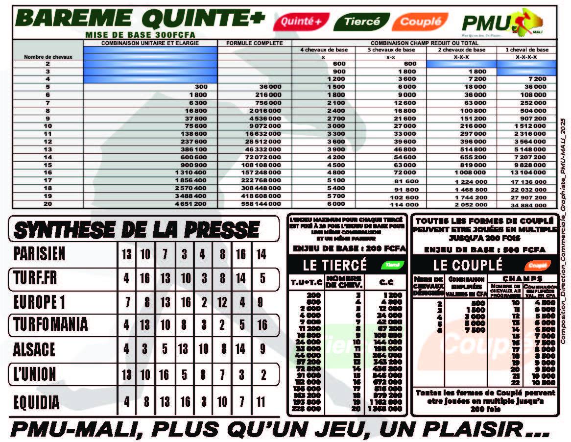 LES PRONOSTICS DU PMU MALI DU 10-12-2025